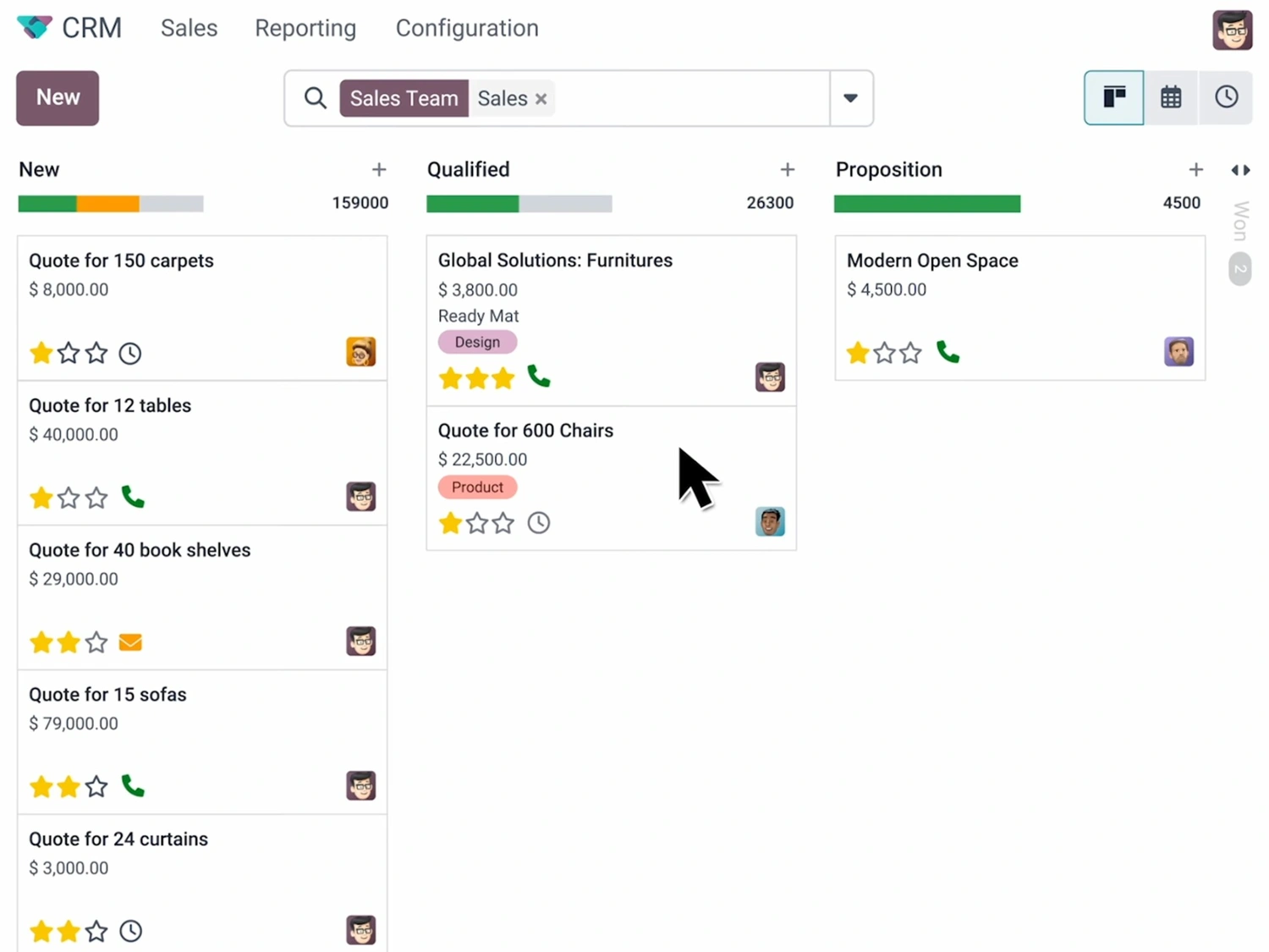 Schedule calls, meetings, mailings or quotations, and Odoo automatically plans the next activity based on your sales script.
